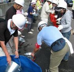 ■9月6日(日)9時00分から、宮の森小学校及び周辺道路において、宮の森大倉山防災フェスティバルが実施されました。 ■第一部では、地震が発生したとの想定で、避難訓練(サイレンで避難開始)、消火訓練(消火器訓練、バケツリレ・・・