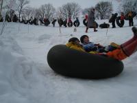 ■2月28日(日)10時00から、荒井山町内会主催の第6回チューブソリ大会が、荒井山緑地において行われました。 ■おだやかな天気にも恵まれ、おとなも子どもも、冬の1日を大いに楽しみました。