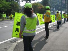 秋晴れの「交通安全市民総ぐるみ運動街頭啓発」