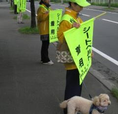 ワンちゃんも参加「初夏の交通安全街頭啓発」
