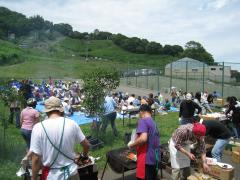 ■6月21日(日)11時00分から、荒井山緑地において、第5回目となる「荒井山町内会」バーベキュー大会が行われました。まぶしい日差しの中、約180人が参加し、炭火焼きのおいしいお肉や野菜に舌鼓を打っていました。 ■この日・・・