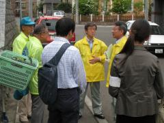 ■7月1日(水)からの「ごみ有料化」「排出ルールの変更」にともない、7月1日(水)から3日(金)の3日間、集中的に「ごみステーション早朝指導啓発」が行われました。 ■それぞれの地域の町内会長、環境衛生担当の役員、班長、日・・・