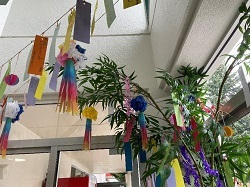 昨年に引き続き、7月7日から8月7日まで、宮の森児童会館との共同で宮の森会館玄関前に七夕飾りを展示しました。 児童会館利用の子どもたちと、介護予防センターの教室に参加されている高齢者、そして今年は「おしゃべりサロンin宮・・・