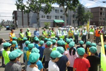 7月11日(水)、宮の森交番付近で夏の交通安全運動街頭啓発が行われました。 明け方までの雨がうそのような晴天のもと、三角山小学校3年生41名と宮の森大倉山地区交通安全母の会、交通安全運動実践会、交通安全指導員のほか、三角・・・