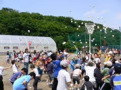 ■6月22日(日)9時00分から、三角山小学校グランドで、「宮の森明和会」恒例の「家族大運動会」が行われました。第48回目を迎えた今年は、好天にも恵まれ、子どもからお年寄りまで、約450人が参加しました。 ■三角山小学校・・・