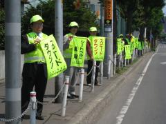 ■6月18日(水)10時30分から、宮の森小学校前の交差点付近で「初夏の交通安全運動街頭啓発」が行われました。 ■好天に恵まれ、約60名が参加しました。 ■約30分間、交差点を黄色のフラッグで埋め尽くして、ドライバーの皆・・・