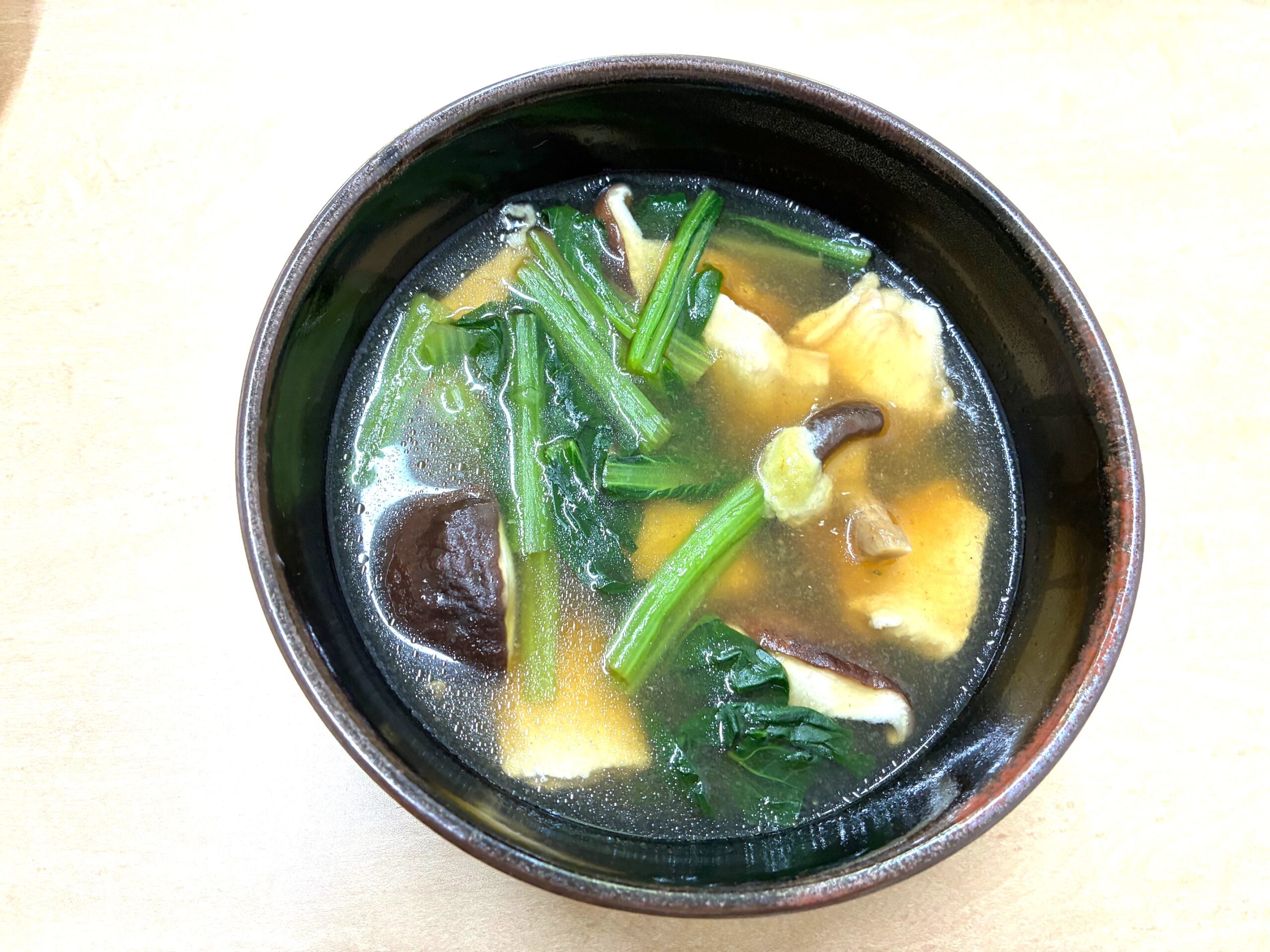 ① 鍋に★としいたけを入れて中火にかけ、煮立ったら鶏肉に片栗粉をまぶして加え1~2分煮る。小松菜を加えサッと煮る