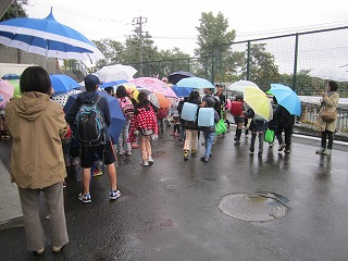 ◆その後、校内放送に従って、分団ごとに正面玄関の前に移動。