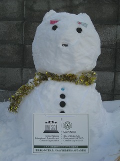 この雪だるまは、札幌市がユネスコ創造都市に加盟したことを記念し、「さっぽろ雪まつり」の期間中に作ったものです。