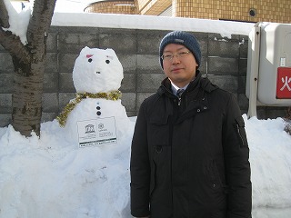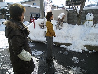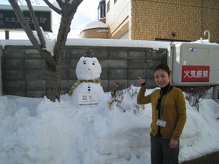 ◆雪だるまを制作した吉田所長は、「9時30分から10時30分頃まで、およそ1時間かけて雪だるまを作りました。気温が低く雪がさらさらしているので、雪がなかなか固まらず苦労しました。少しお水をかけて固まらせるようにしました。作っているうちに面白くなり、思っていたよりも大きいものができたので、うれしく思います」と会心の笑顔で話していました。