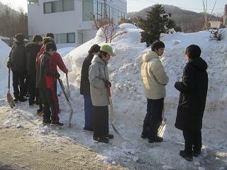 この後、生徒たちは移動し、学校に至る坂道の歩道に積もった雪をスコップで取り除きました。