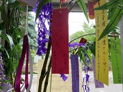 昨年に引き続き、7月7日から8月7日まで、宮の森児童会館との共同で宮の森会館玄関前に七夕飾りを展示しました。