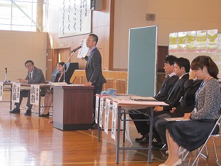 ◆続いて、2時50分から体育館で「学校説明会」が開かれました。この会は、学校の先生が保護者に学校の教育方針を説明するために開かれているものです。