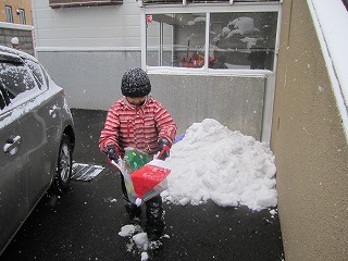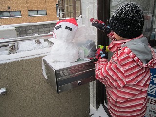 男児と所長の「雪だるま制作大作戦」はこれにて終了。