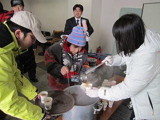 「ウィンタースポーツフェスタin大倉山」で連町の方々がスープを配布