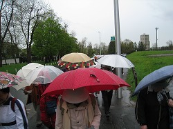 ■まずは、会館下の駐車場で軽く体を動かした後、『傘の華』を咲かせながら円山動物園までウォーキングを開始。わずか、30分たらずのウォーキングで目的地の円山動物園に着いてしまいましたが、天候のせいか「もう充分歩いた!」といった感じでした。
