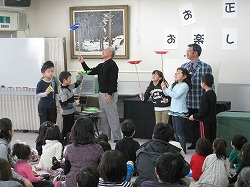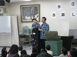 ■まずは、「腹笑会」の小野さんと藤田さんのオンステージです。腹話術や手品、皿回しなど楽しい出し物に子どもたちは「爆笑」!!華麗なる初笑いとなりました。