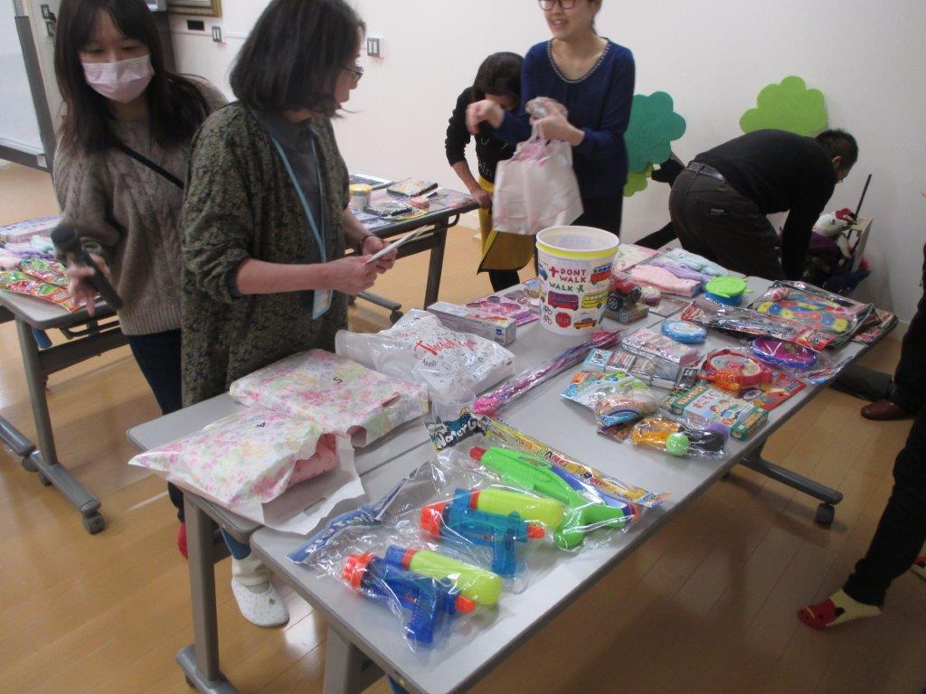 ビンゴ大会ではたくさんの景品にみんなドキドキ。1等賞はお母さんでした。