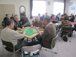 ①麻雀の部⇒会場は2階の大倉山、参加者数は40人です。10卓に分かれ、ゲームを3回行い、審判員の厳正なる判定に基づき、合計点を競いました。