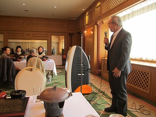 続いて、宮の森まちづくりセンターの吉田所長が挨拶に立ち、「今年の展示会も力作、自信作がずらりと展示され、見ごたえがありました。来年もお元気で教室に通ってください」と述べました。