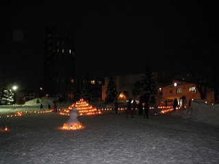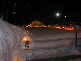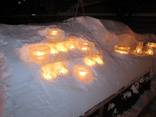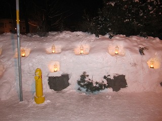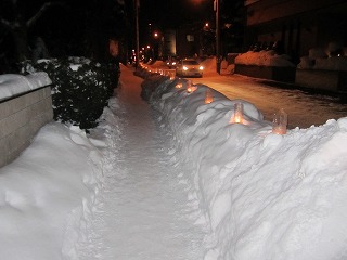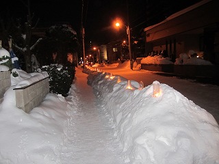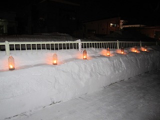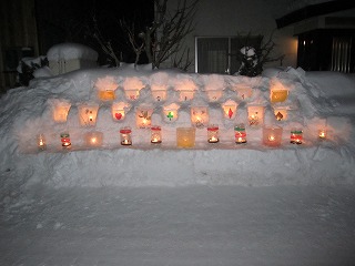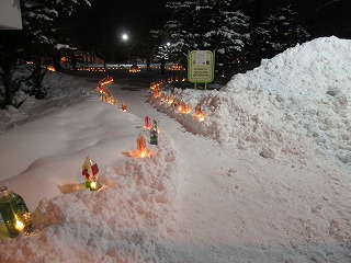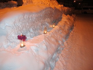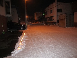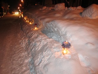地区内では、五つの町内会の方々が、各地でキャンドルを灯し、雪景色を美しく演出しました。
