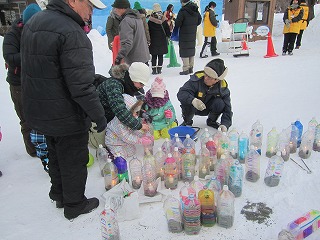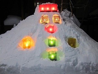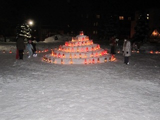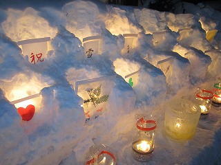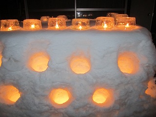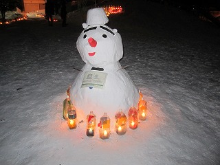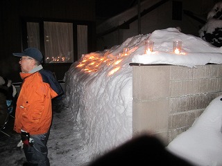 キャンドルの点灯の方法も、ペットボトルに入れたもの、雪の壁に穴を開けその中にキャンドルを入れたもの、アイスキャンドルにしたものなど、会員の方々それぞれの工夫がなされています。