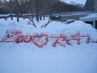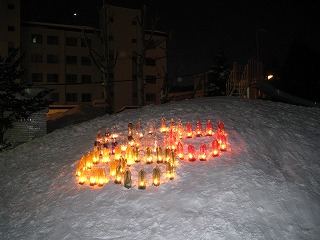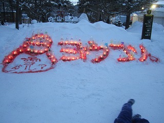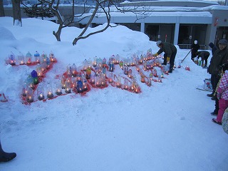 キャンドルの点灯は、当初1月31日(土)に円山西町児童会館の周辺で行う予定でしたが、同日はあいにくの吹雪に見舞われたので中止。