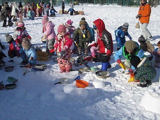 ◆グラウンドで行われた遊びは、宝探し、雪玉の的あて、サッカーボールのシュートゲームなどです。