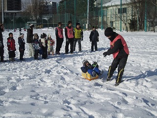 この事業は、冬の厳しい寒さの中で、遊びを通じて幼児に屋外で体を動かしてもらおうと、中央区役所が学校や児童会館、幼稚園、保育園などと連携して主催したものです。