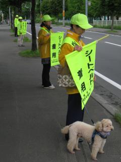 ワンちゃんも参加「初夏の交通安全街頭啓発」
