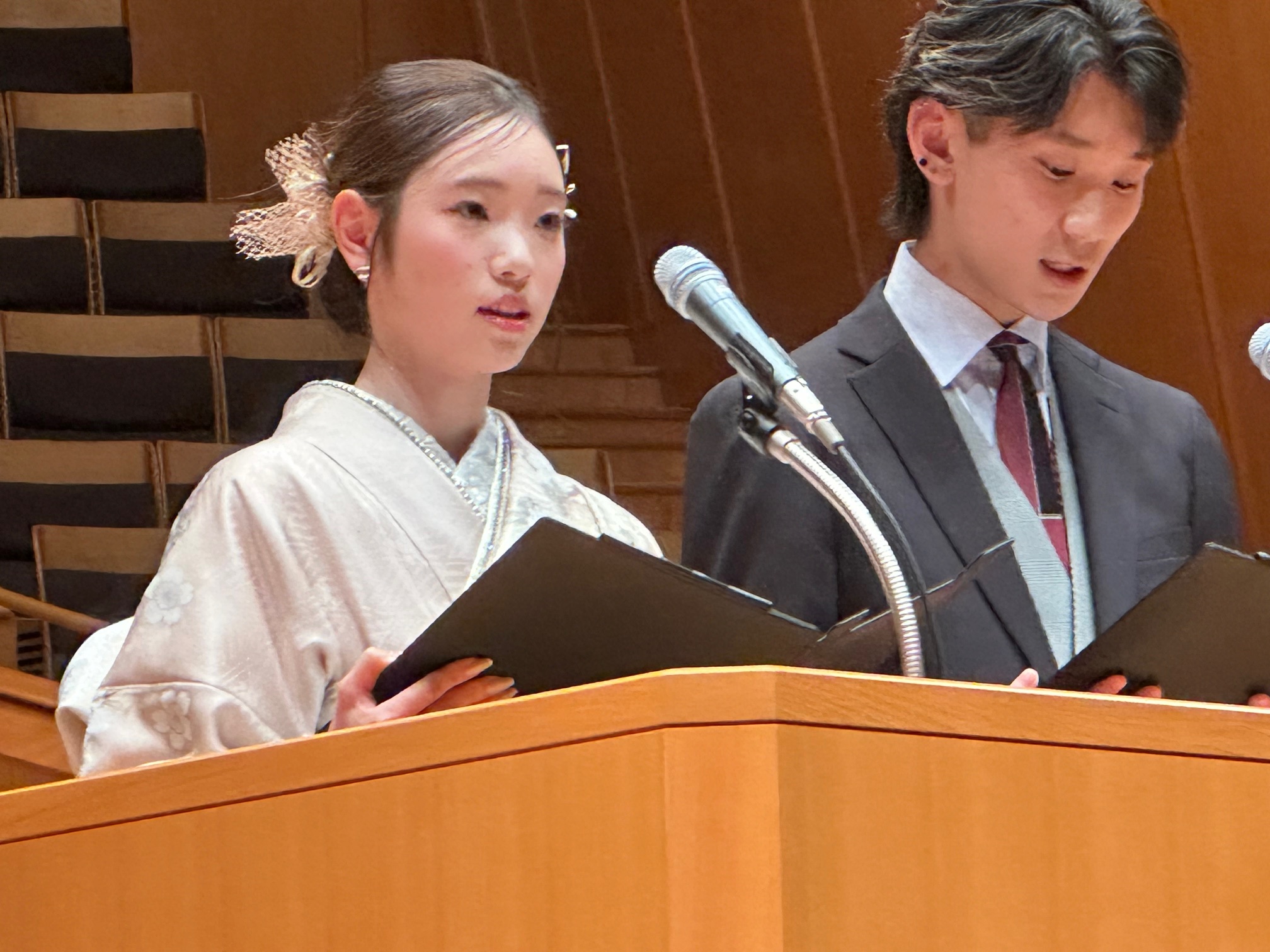 式典では、委員長および中央区長から新成人へ向けた祝辞が述べられ、続いて地域から選出された6名の新成人代表が壇上に立ち、札幌市民憲章を力強く唱和しました。