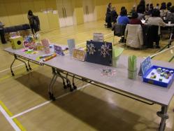 ■会場には、手作りおもちゃの展示コーナーも設けられ、皆さん、興味深く手に取ってご覧になっていました。