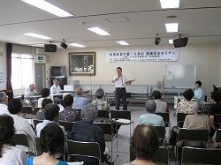 ■当日は、約30名の地域の方々を前に、紺井さんとケンちゃんの掛け合い、時には、会場の人を交えて楽しく教室は進みました。
