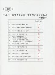 ■介護保険のヘルパーさんは、『「本人の持つ能力を最大限に引き出しながら」「本人のためになることだけを」「日常生活を送るために」お手伝いをする役割であり』、『「1セット1時間30分で」「家の中から支援をスタートし」「本人のいる場所で」「本人と一緒に」必要なことを行う』ため、できないことが沢山あることが説明されました。