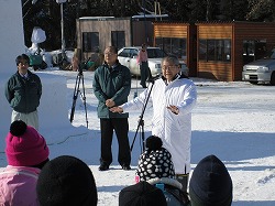 ■子どもたちの初滑りに引き続き、スライダーを建設した「岩田地崎工業」から上田文雄札幌市長に目録の贈呈がありました。