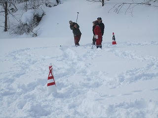 今回は、連町役員の方々が、あらかじめ雪原にコーンを九つ置いてコースを設定してくれました。