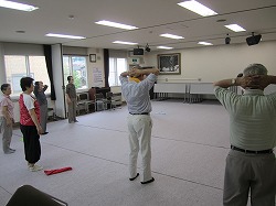 ■この日は、体力測定会に参加された21名の方のうち、7名が参加され、加藤先生のご指導のもと、約1時間ストレッチに汗を流しました。