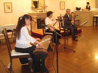 3人の息の合った演奏により、優雅な調べが会場に流れます。会場の雰囲気がぐっと盛り上がり、お祝いのムードであふれました。演奏が終了した後、しばしの間歓談が続きました。