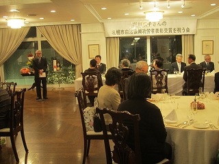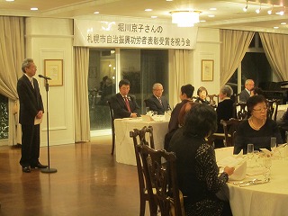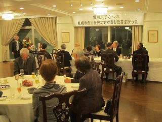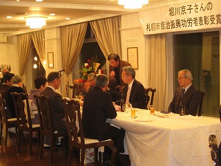 堀川京子さんの札幌市自治振興功労者表彰受賞を祝う会が開かれました。