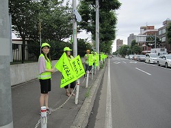 ■平成23年7月15日(金)10時15分から、宮の森小学校前交差点にて、夏の交通安全市民総ぐるみ運動街頭啓発が行われました。