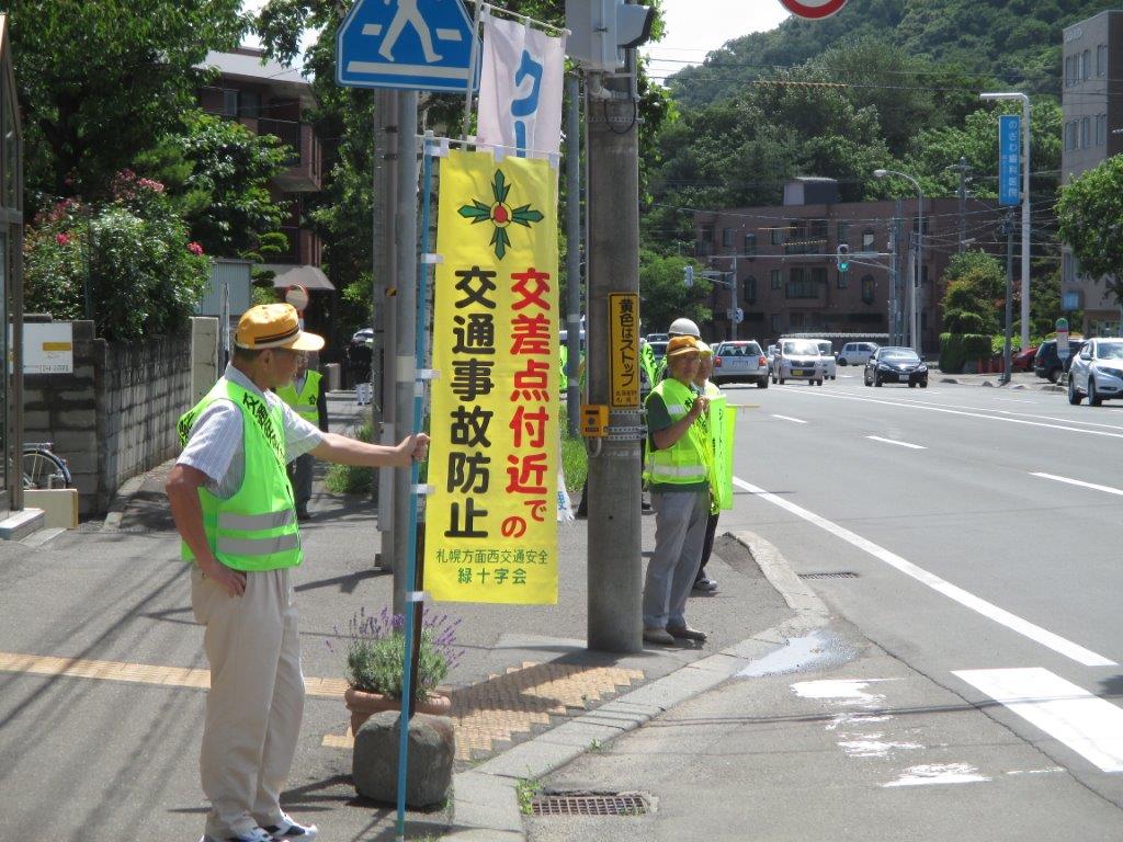 7月11日(水)、宮の森交番付近で夏の交通安全運動街頭啓発が行われました。