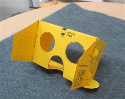これが子どもの視野を体験できるメガネです。「チャイルドビジョン」と言って、もともとは交通安全の啓発のために考え出されたようです。確かに、これではお母さんはもちろん、横から来る車も見えませんね…。「チャイルドビジョン」でネット検索すると型紙が出てきますので、気になる方は作ってみてください。