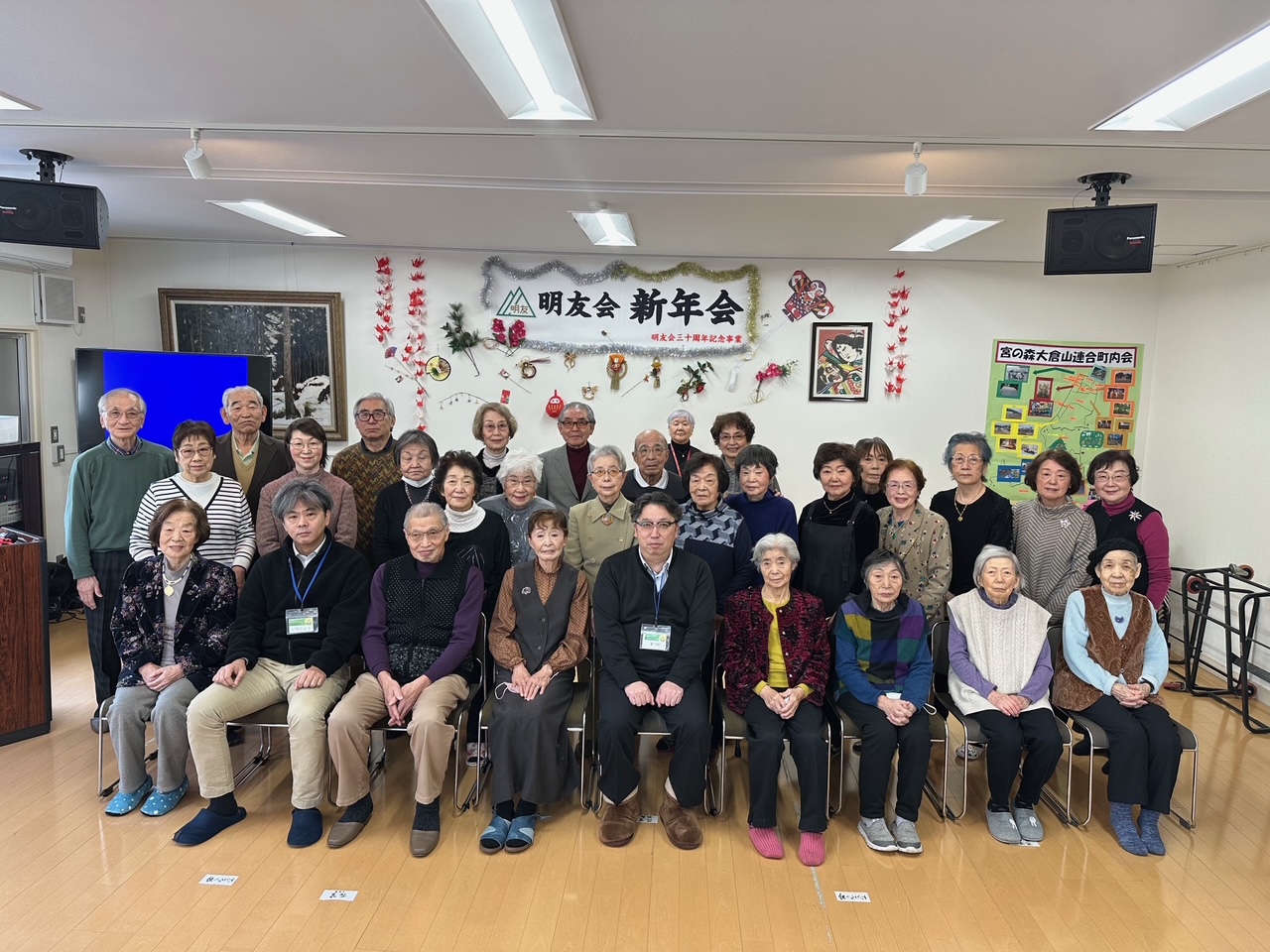令和8年1月15日(木)、宮の森明友会の新年交礼会が宮の森明和地区会館にて開催されました。開会に先立ち、参加者全員で集合写真を撮影し、和やかな雰囲気の中で会がスタートしました。須藤会長の新年のあいさつに続き、宮の森明和会・金井会長をはじめとする来賓の皆さまから温かいお言葉をいただき、会場には新年を寿ぐ晴れやかな空気が広がりました。