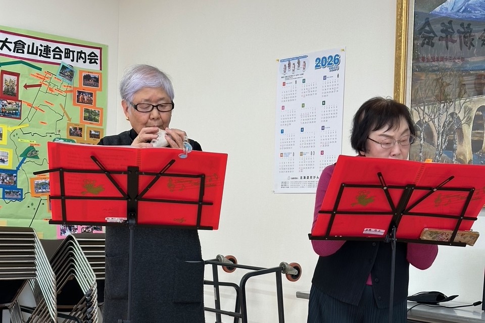 その後、まちづくりセンター所長による祝杯の発声で歓談が始まり、新年を喜ぶ声や笑顔があふれました。しばらくして会員による余興が披露され、オカリナの優しい音色が会場を包み、続くカラオケでは懐かしの名曲に合わせて手拍子が起こるなど、温かい一体感が生まれました。