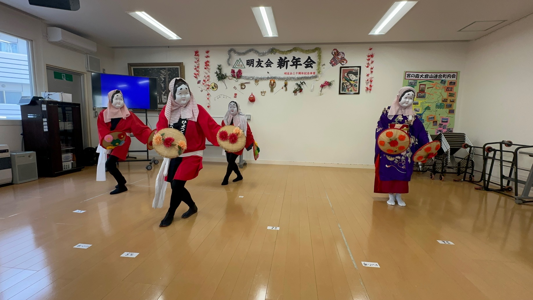 会の締めくくりには、明友会役員による「ひょっとこ踊り」が登場。息を切らしながらも全力で踊る姿に、会場からは大きな拍手と笑いが起こり、会場全体がさらに盛り上がりました。