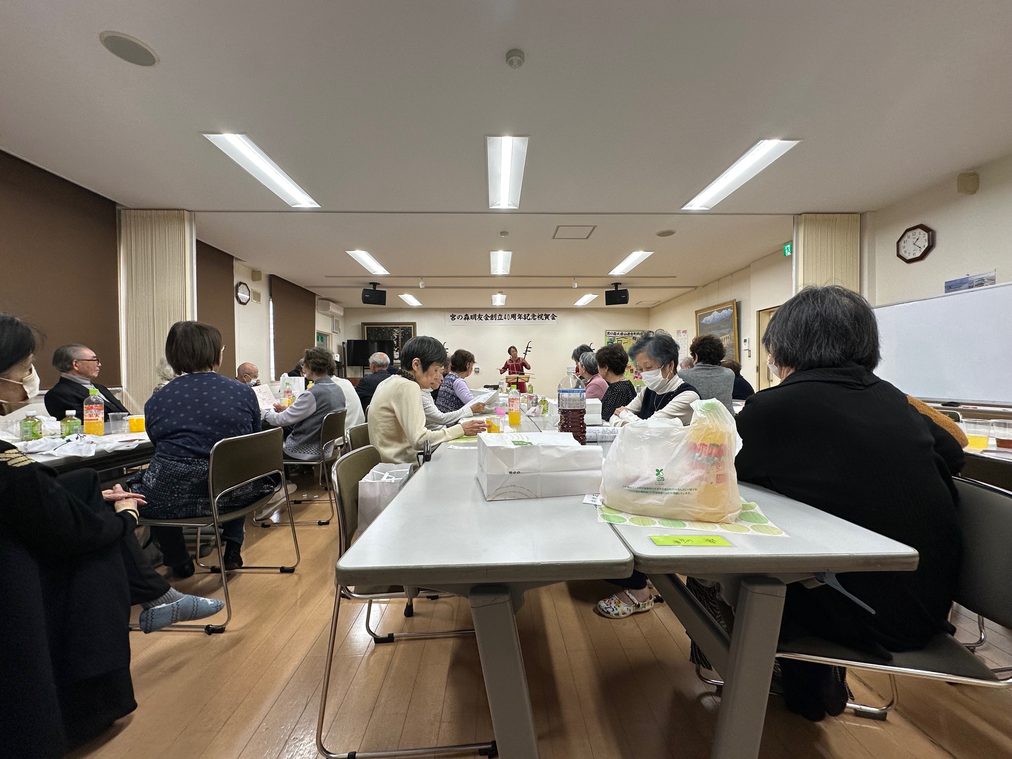 祝宴では、地域在住の二胡奏者による心温まる演奏と、三味線と民謡の披露があり、演目「ふるさと」では参加者が声を合わせて歌う場面も見られました。会場は和やかな雰囲気に包まれ、音楽を楽しむひとときとなりました。