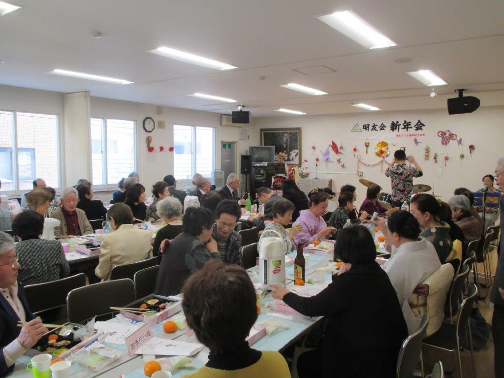1月9日(水)、宮の森明友会(老人クラブ)の新年会が行われ、57名の方が出席しました。