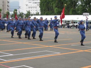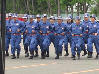 ◆訓練は「小隊訓練」と「総合訓練」があります。訓練では各分団が競い合い、優秀な成績を収めた分団は表彰されます。「小隊訓練」は、2、3の分団で隊を成し、指揮者による命令の下、整列して行進したり、駆け足をしたりする訓練です。この訓練は、動作の規律と指揮者の能力を向上させ、団結心を高めることを目的として行うものです。宮の森分団は、桑園、円山の分団とともに、整然と隊を成して訓練に臨みました。
