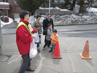 ◆平成25年4月8日(月)午前10時20分、三角山小学校前において、新入学交通安全特別啓発が行われました。