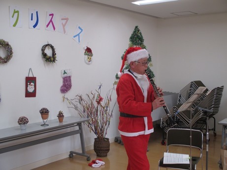 サンタクロースも駆けつけ、参加者へのクリスマスプレゼントと、クラリネット演奏のプレゼントもあり、楽しいクリスマス会となりました。